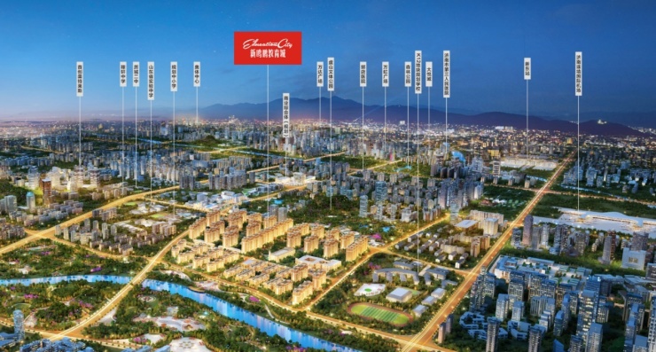 除了新东方国际双语学校,郭店片区还在2021年迎来了一家自带教育IP的房企——新鸥鹏。据了解,新鸥鹏集团创始于1993年,是中国少有校企双驰名商标企业,中国民营企业500强,中国更具影响力的教育文化企业,打造0-100岁的完整教育产业链,完成了“教育家”到“教育+”的转换。