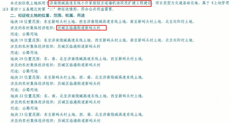 近日,济南起步区临港街道、遥墙街道发布了7宗拟征收土地公告,涉及到高新区遥墙街道的遥墙村、王家庄村,历城区临港街道的新码头村、马家村、大辛庄村、向阳村、小许家庄,征收土地均用于济南绕城高速公路小许家至港沟段改扩建工程。