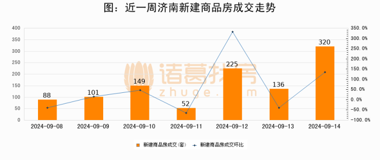 【济南成交日报】09月14日新房成交320套;涨价房源19套