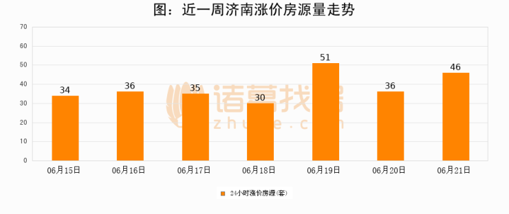 根据诸葛找房数据显示,济南24小时涨价房源量为46套,较06月20日增加10套,环比上涨27.8%。与此同时,涨价房源占比小幅扩大,业主信心有所提升。