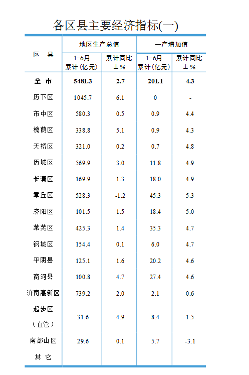 济南各区县上半年GDP公布!历下、槐荫、起步区增速较快