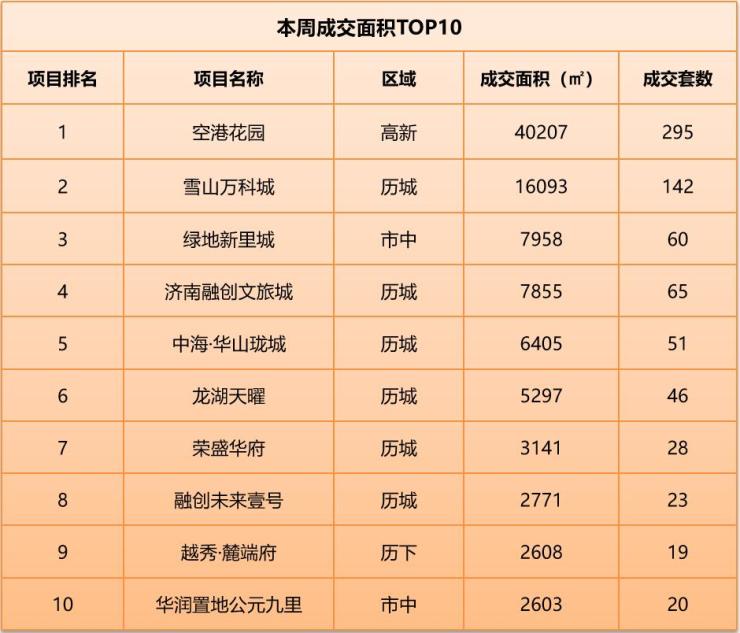 12月20日—12月26日,济南商品住宅签约面积TOP10,空港花园、雪山万科城分别位于榜单的排名前列、第二名。