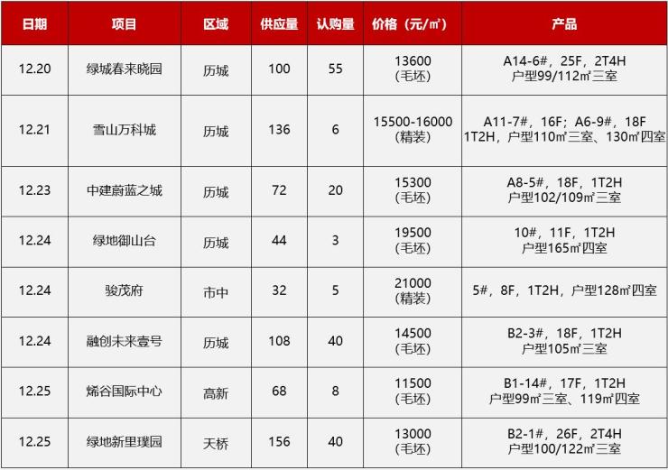 12月20日—12月26日,济南共有8个项目开盘加推。