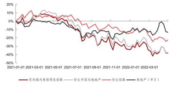 自2021年1月1日至4月底,克而瑞内房股先进指数跌幅38.1%,同期恒生中国内地地产指数跌幅37.4%,恒生指数跌幅22.6%,房地产(申万)板块跌幅13.4%。