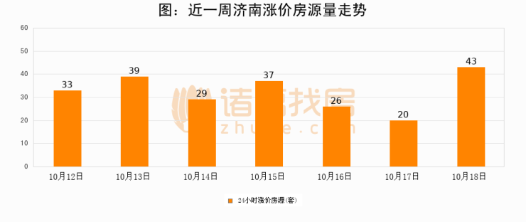 根据诸葛找房数据显示,济南24小时涨价房源量为43套,较10月17日增加23套,环比上涨115%。与此同时,涨价房源占比小幅扩大,业主信心有所提升。