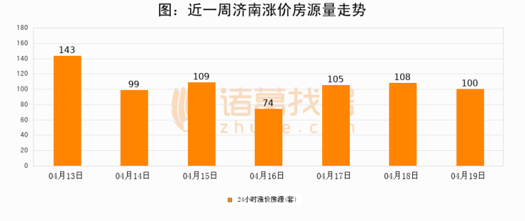 根据诸葛找房数据显示,济南24小时涨价房源量为100套,较04月18日减少8套,环比下降7.4%。与此同时,涨价房源占比小幅回落,对于购房者来说是一个入市窗口期,购房者可抓住时机入市。