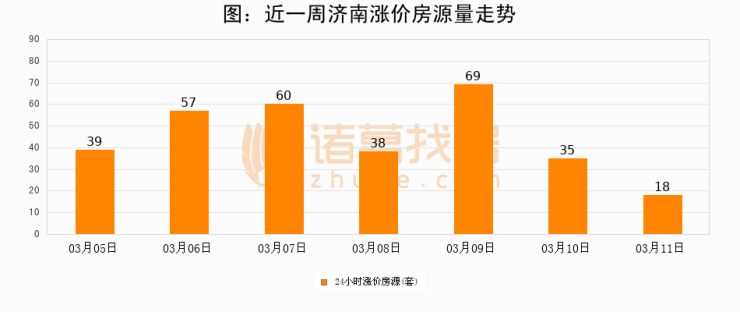 根据诸葛找房数据显示,济南24小时涨价房源量为18套,较03月10日减少17套,环比下降48.6%。与此同时,涨价房源占比小幅回落,对于购房者来说是一个入市窗口期,购房者可抓住时机入市。