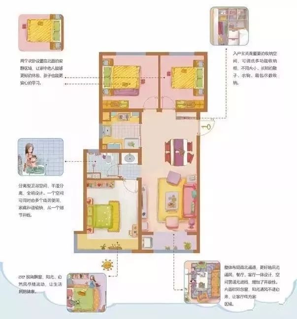 北向两个安静次卧室让老人更好的休息、孩子更安心的学习;