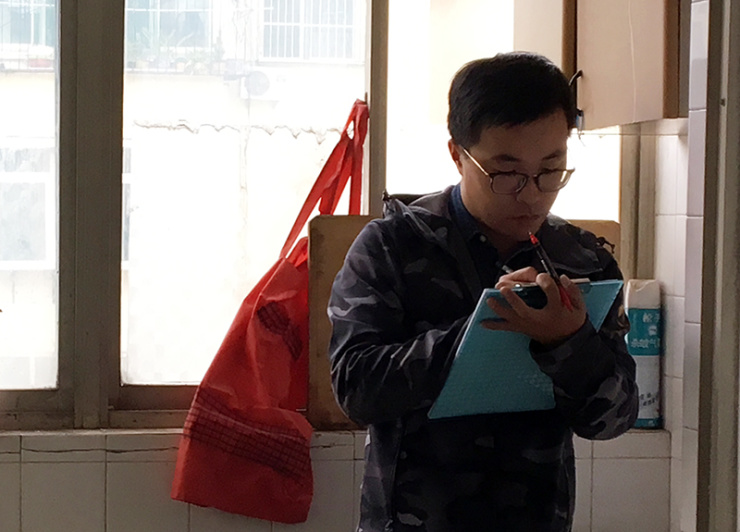 到达实勘地点,陈吉祥飞快地登上5楼,敲开房门,忙碌的工作正式开始了。