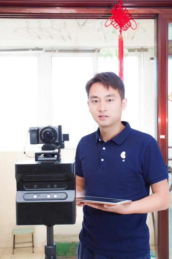相较于传统的实勘测绘,VR技术给客户的体验感是无可比拟的,但它的拍摄要求却更加严格。比如,拍摄时需要关闭门窗,随时移动设备进行点位采集,以做到360°无死角——细致到每一件物品、每一个角落。7月份正是天气最热的时候,侯法伟在房间里拍摄,汗水很快湿透全身。