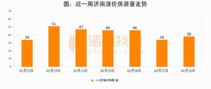 根据诸葛找房数据显示,济南24小时涨价房源量为38套,较03月27日增加4套,环比上涨11.8%。与此同时,涨价房源占比小幅扩大,业主信心有所提升。