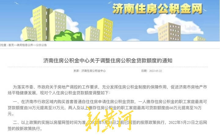 济南首套房公积金贷款额度提至70万,5月23日后网签执行新政