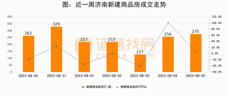 【济南成交日报】09月05日新房成交275套;涨价房源48套