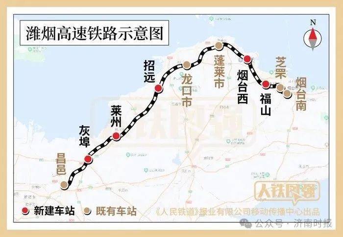 潍烟高铁正线全长237.3公里,设计时速350公里。