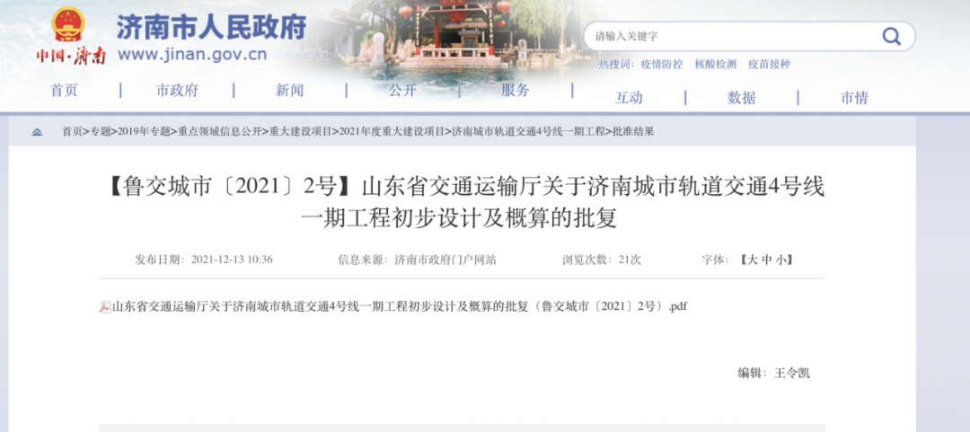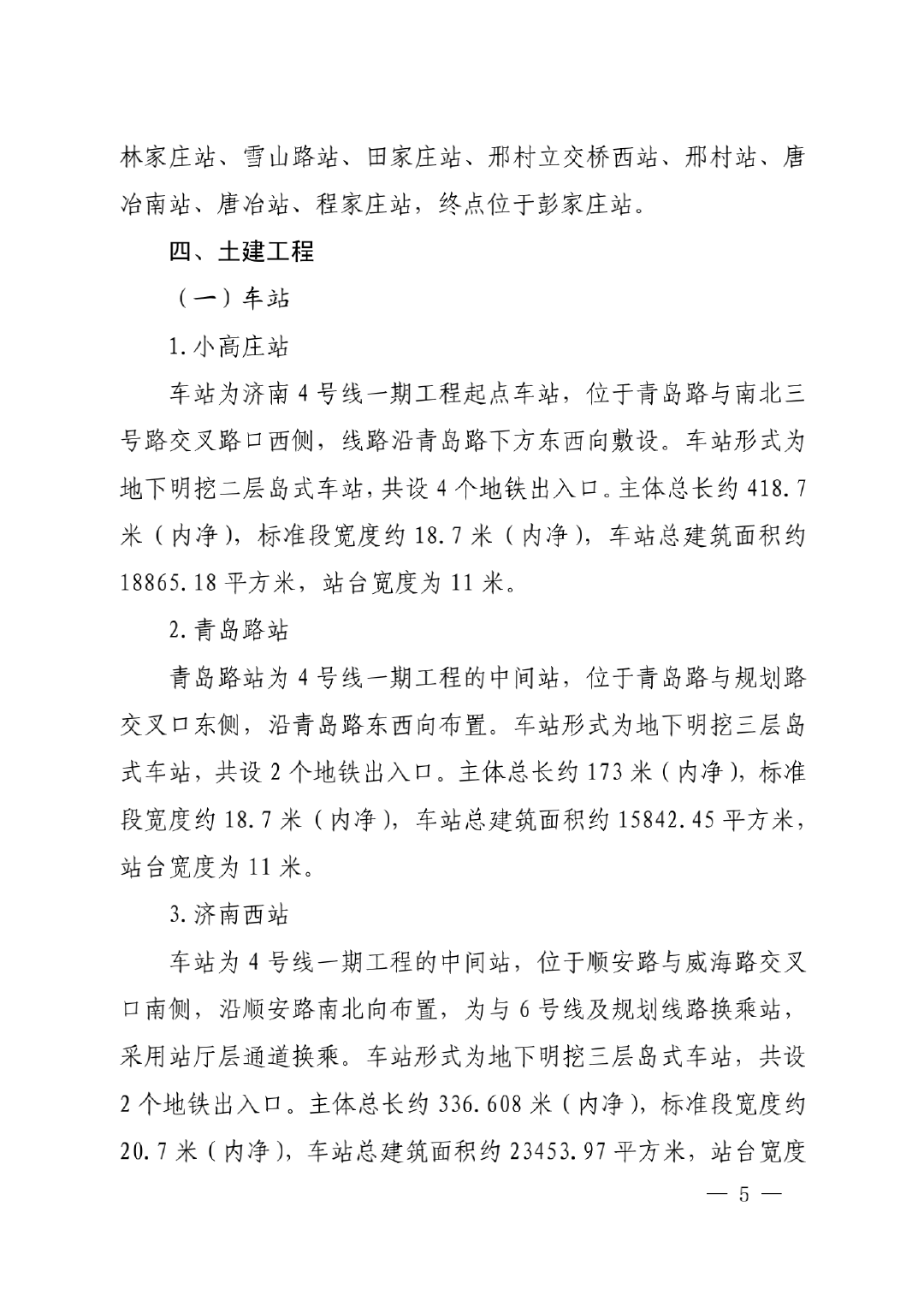 济南市人民政府官网12月13日公示了“山东省交通运输厅关于济南城市轨道交通4号线一期工程初步设计及概算的批复”。省交通运输厅今年2月9日对济南市城乡交通运输局《关于申请批复济南城市轨道交通4号线一期工程初步设计及概算的请示》(济交轨道〔2020〕11 号)、初步设计文件等予以批复,从中可以看到多工程概况及车站细节。