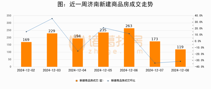 【济南成交日报】12月08日新房成交119套;涨价房源25套