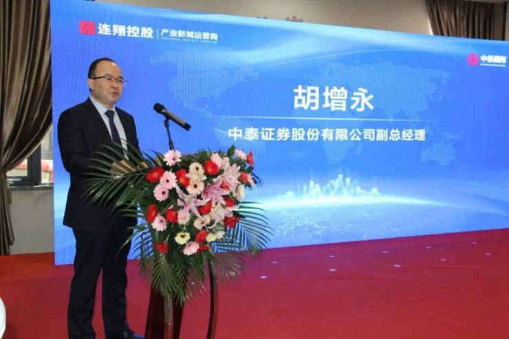 活动由连翔控股集团有限公司副总裁田红芳主持,秦蕾书记、刘梦海主席、中泰证券股份有限公司副总经理胡增永、连翔控股集团有限公司董事长陆建林分别致辞。