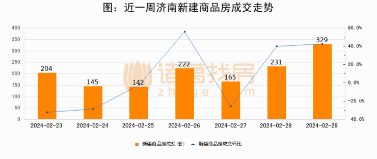 【济南成交日报】02月29日新房成交329套;涨价房源51套