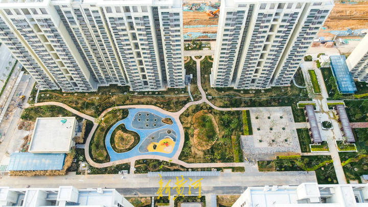 整个项目在原来水屯村的旧址上建设,目前多座高层安置楼全部建成,外墙装饰和社区绿化基本完成,正在进行社区道路、配套设施安装等施工。