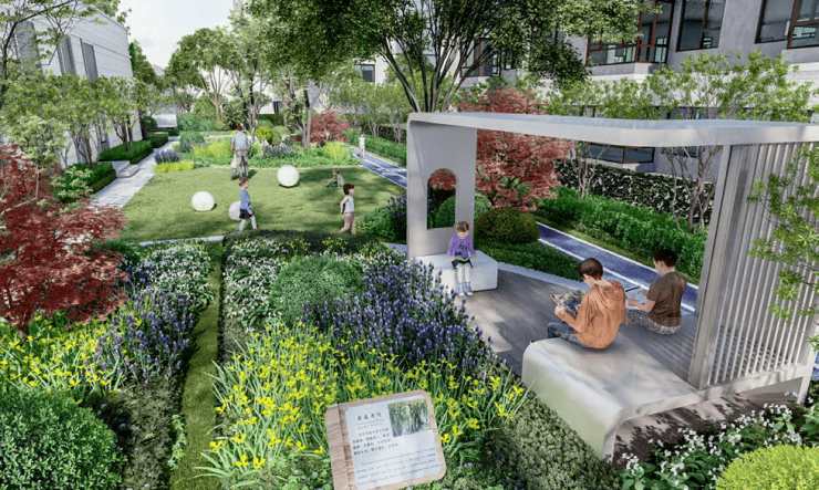 翰林府锻造的一环二轴八节点互动园境,打造适合全龄段成长陪伴式园林,不仅有体能小操场,能够帮“学霸”们定时定点锻炼;棋艺万象囊括各大棋类,弹指千钧间让孩子更有智慧与谋略;诗风雅园甄选的植物认知园,是孩子的植物科普空间,让孩子在花园拾趣时,认识与探秘自然的科学奥妙,成为小小植物学家。