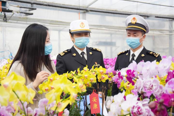 德州海关关员正在调研出口兰花生长情况 吴旭东 摄