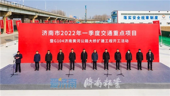 2月16日,济南市2022年一季度全市交通工程集中开工活动在G104京岚线济南黄河公路大桥扩建工程现场举行。济南黄河公路大桥项目在设计上采用新桥与老桥并建形式,新建大桥公轨分层合建,上层为双向八车道公路,下层为双线轨道交通。