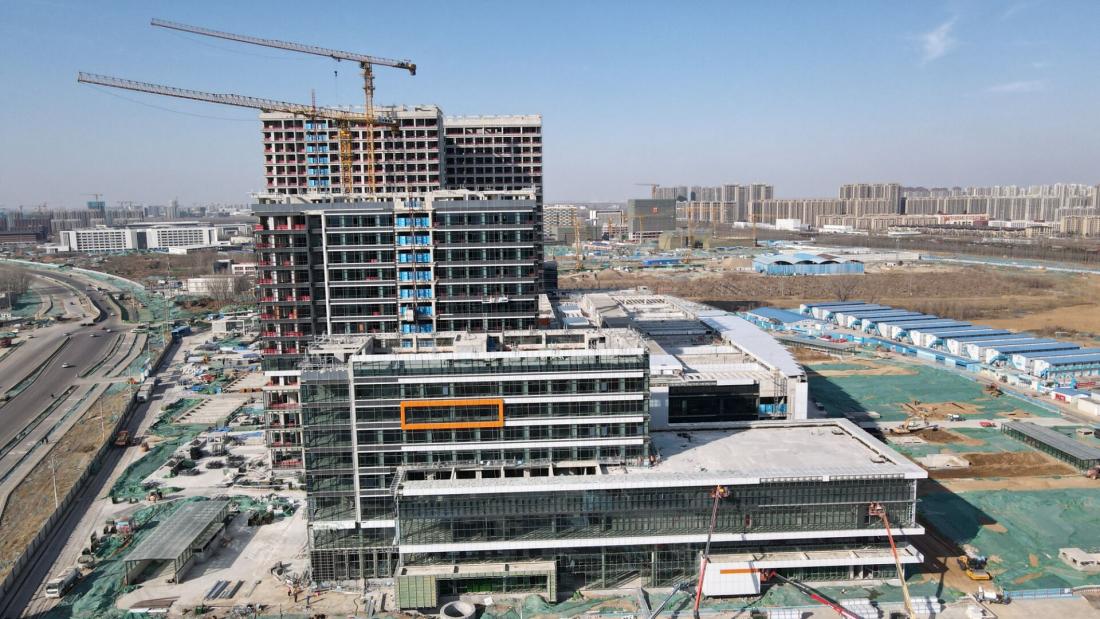 2月22日,在烟台路西首的济南国际医学科学中心核心区,树兰(济南)国际医院项目多座高层建筑已经封顶,施工进入室内装饰、外墙装修和机电安装阶段,预计今年9月竣工。