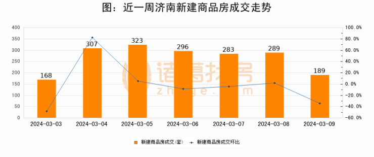 【济南成交日报】03月09日新房成交189套;涨价房源69套