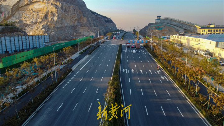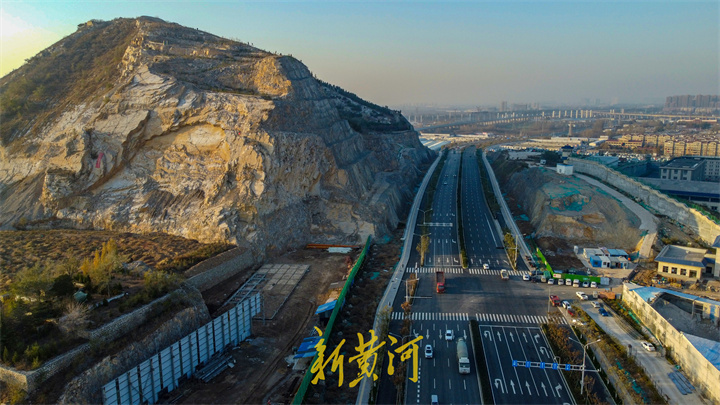 11月13日,在济南市党杨路市中区路段,利用丘山东侧山体新建道路的施工围挡临时打开,实现快车道的临时双向通车。