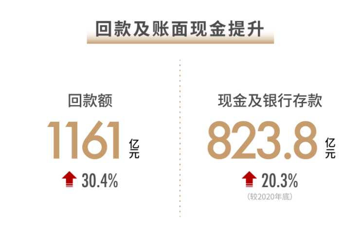 回款额、账面现金大幅提升。报告期内,世茂回款额达1161亿元,同比增长30.4%;现金及银行存款823.8亿元,较2020年底增长20.3%;充裕且流动性高的资储优势,持续增厚世茂经营底盘。