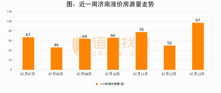 根据诸葛找房数据显示,济南24小时涨价房源量为97套,较07月12日增加47套,环比上涨94%。与此同时,涨价房源占比小幅扩大,业主信心有所提升。