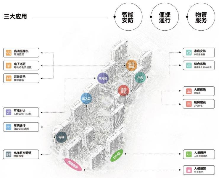同时,打造3大智慧系统、7大智慧安防、4重通行智控、4维联动布局共18大智慧社区配置,保障社区秩序与家人安全。