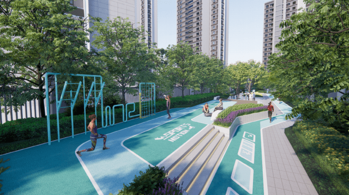 同时,城市景观绿轴贯穿社区,营造滑板场、露营地、樱花大道、萌宠空间等多重场地;20余个社区景观节点,既满足健康悦动生活,也实现静谧独处空间;自建约3000方交互式商业街区,一站式集合咖啡馆、酒吧、轰趴馆、棋牌室……多种玩乐休闲业态,创造属于年轻人的生活主场。
