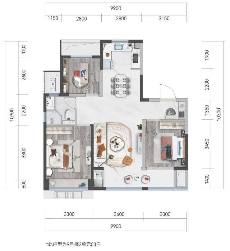 继建面约115㎡经典户型首开后,席位争藏将罄,9#楼随即加推。楼栋北侧、西侧直面公园绿境,享受繁华之余也能沉浸自然之中,居家远眺,风光旖旎。建面约96㎡/105㎡三室格局户型,实现餐客厨一体大互动空间,全面提升空间利用率,满足聚会、休闲、玩乐的年轻生活需要。联通阳台搭配飘窗设计,不论私享时刻还是共享时光,都能沉浸阳光之中。