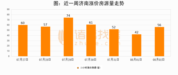 根据诸葛找房数据显示,济南24小时涨价房源量为56套,较08月01日增加14套,环比上涨33.3%。与此同时,涨价房源占比小幅扩大,业主信心有所提升。