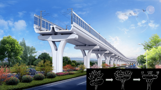 此次浇筑完成的为简支U梁桥墩,设计灵感来源于济南市花荷花,运用分解、引入、切分等设计手法,对桥梁的形态加以整合,具有端庄、灵动、柔美的特点。