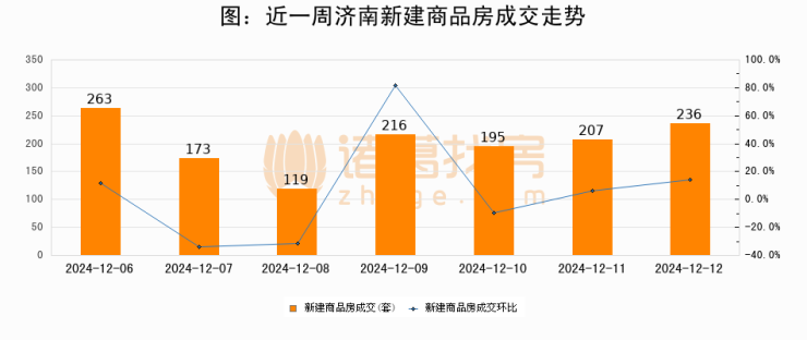 【济南成交日报】12月12日新房成交236套;涨价房源24套