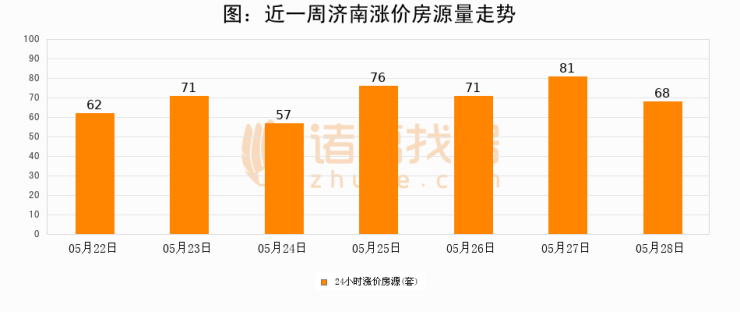 根据诸葛找房数据显示,济南24小时涨价房源量为68套,较05月27日减少13套,环比下降16%。与此同时,涨价房源占比小幅回落,对于购房者来说是一个入市窗口期,购房者可抓住时机入市。