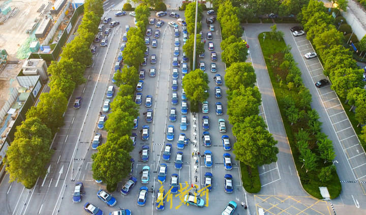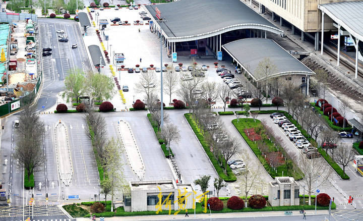 5月17日,在济南西站西广场的出租车蓄车区,众多出租车排起长队,依次等候进入济南西站地下一层的出站乘车区,而在一个月之前的同一时段,蓄车区里空无一车。