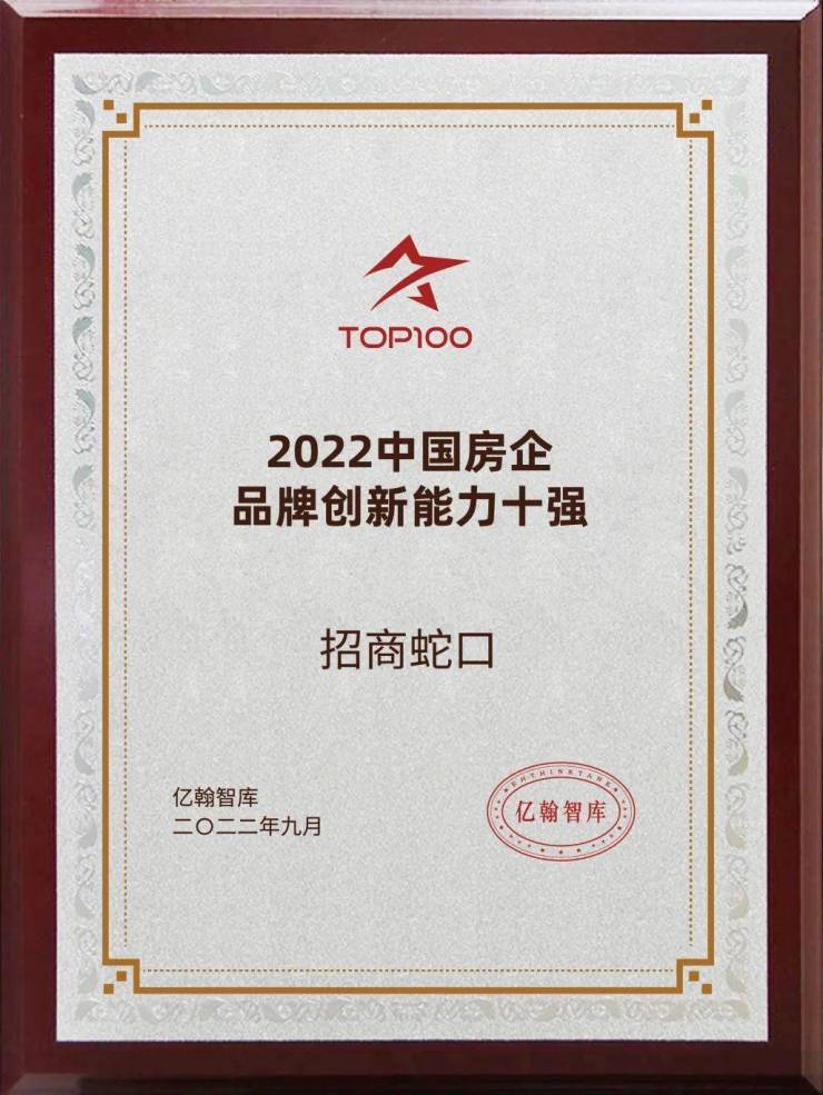9月16日,在亿翰智库主办的CRS中国房地产业战略峰会上,招商蛇口凭借优异表现荣获“2022中国房企品牌创新能力十强”。