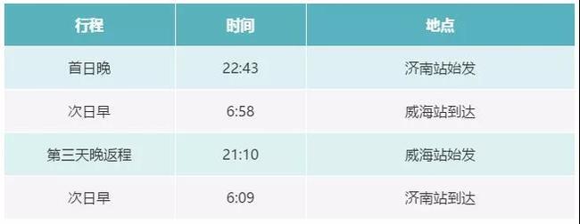 据山东中铁文旅发展集团相关负责人介绍,此次开行的济南至威海旅游专列往返均为“夕发朝至”列车,首日22:43由济南站始发,次日6:58到达威海站,返程为第三天21:10威海站始发,次日6:09到达济南站。这趟旅游专列是今年中国铁路济南局集团公司开行的首趟旅游专列。