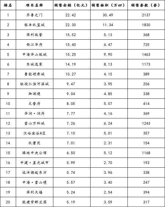 2024年7月15日,济南市房地产业协会发布2024年上半年济南房地产市场运行情况及销售排行榜,内容如下: