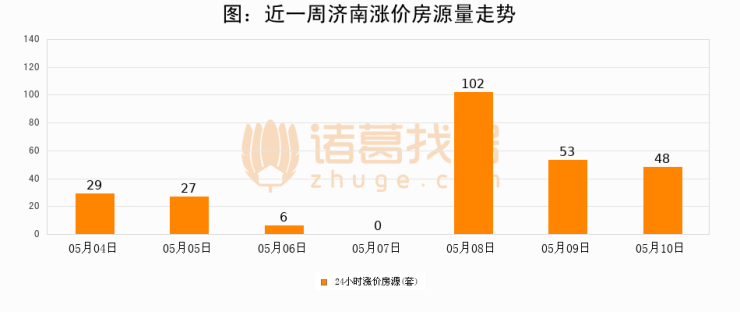 根据诸葛找房数据显示,济南24小时涨价房源量为48套,较05月09日减少5套,环比下降9.4%。与此同时,涨价房源占比小幅回落,对于购房者来说是一个入市窗口期,购房者可抓住时机入市。