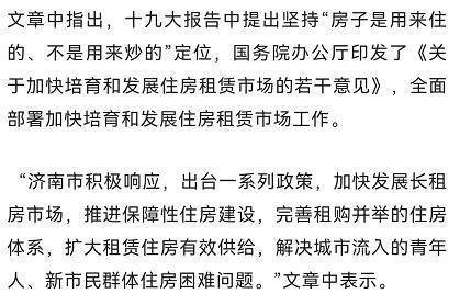 上述文章中进一步称,济南城市发展集团作为济南市一级功能性平台公司,积极承担社会化住房租赁市场主渠道重任,通过市场化运作,为社会提供专业化、规模化、规范化的住房租赁服务,打响“城发乐居”和“要租房,找城发”品牌。