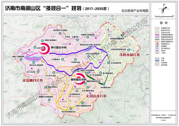 7月15日,《济南市南部山区“多规合一”规划(2017-2035年)》正式公布。根据该规划,南部山区形成“三心、四轴、六片”的总体空间格局,到2035年建设成为华北地区富裕文明、安定和谐、令人向往的生态文明示范区。