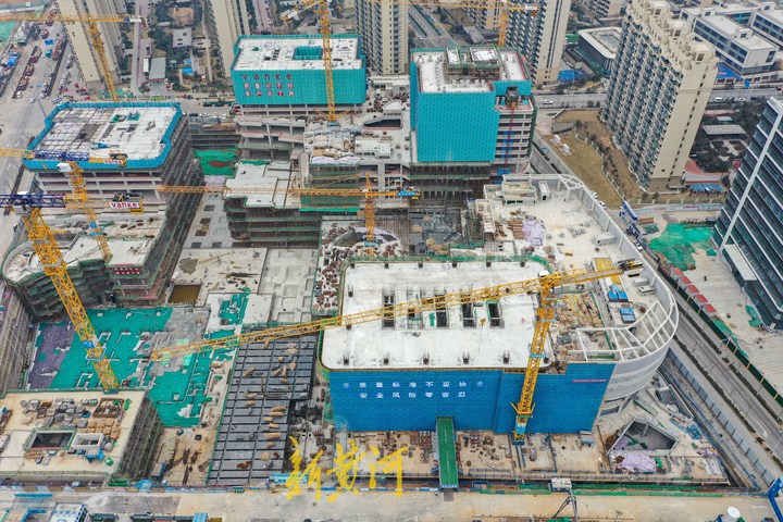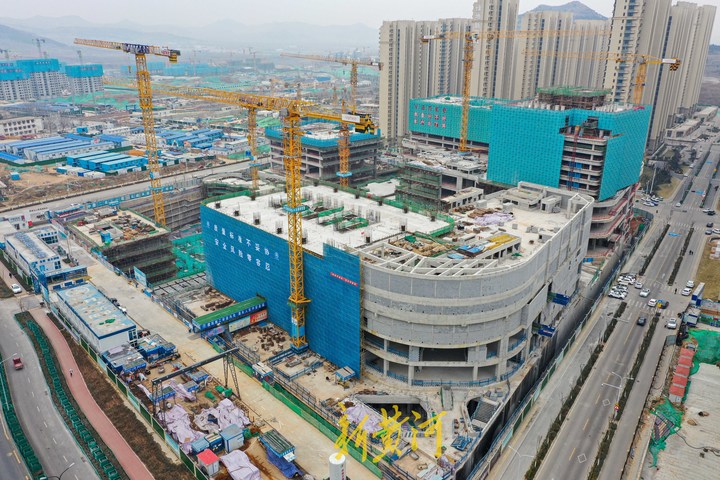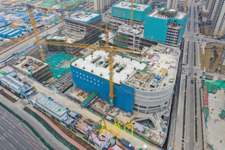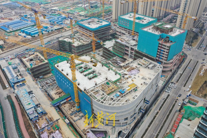 2月17日,在济南市市中区南北康片区,省道103以西、分水岭路以南的万科南北康B6综合体项目建设现场,工人们正在有条不紊地工作着,一派热火朝天的忙碌景象。