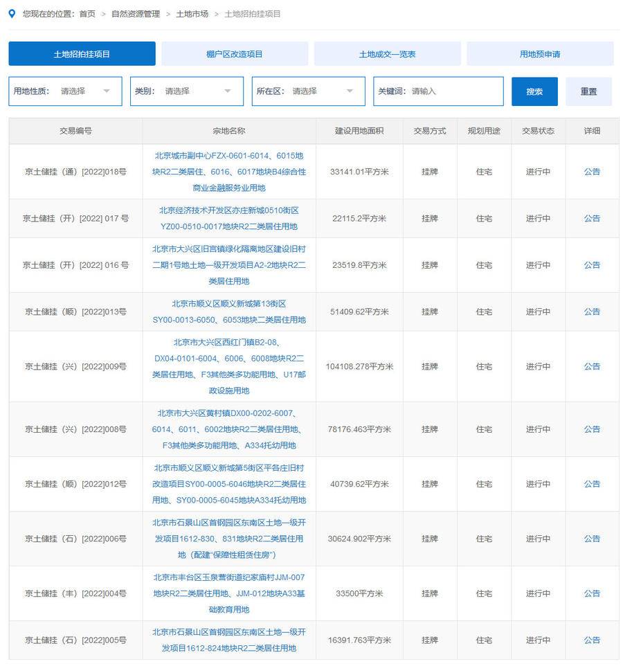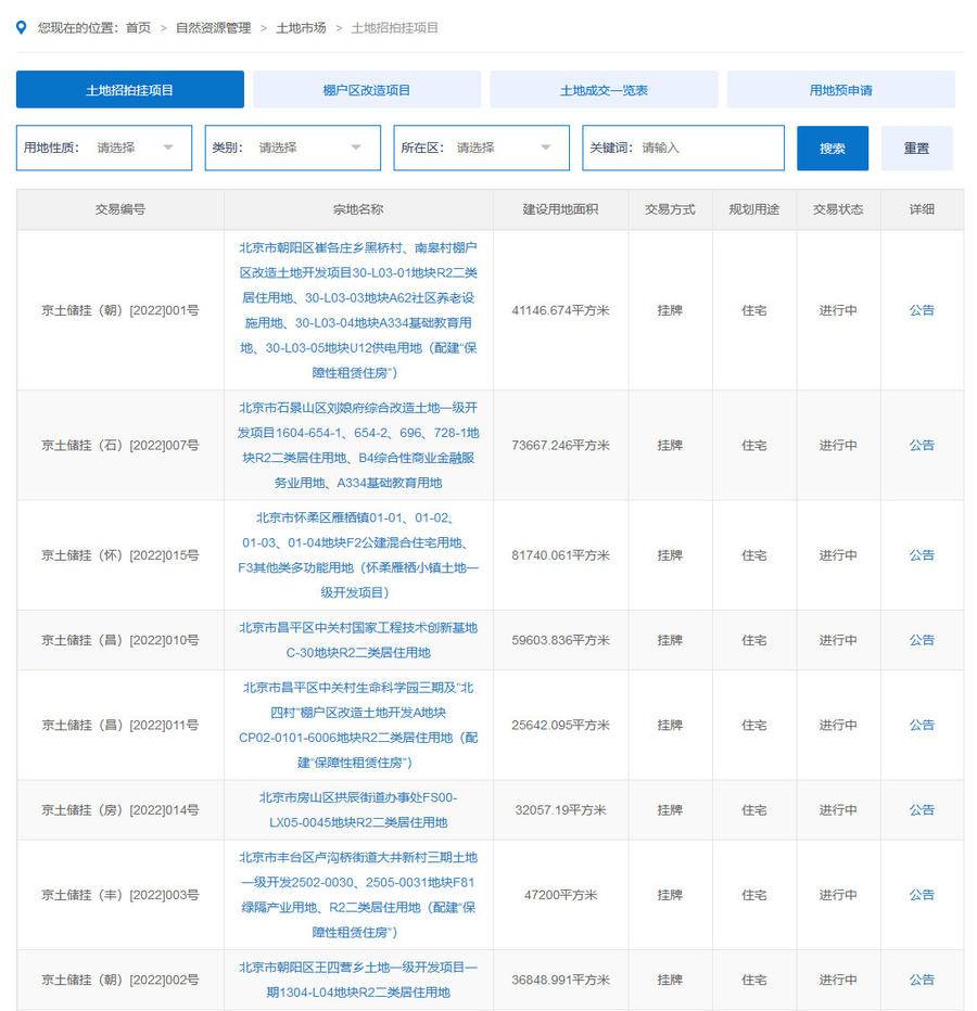 北京发布今年排名前列批集中供地出让公告,18宗地块2月中下旬出让