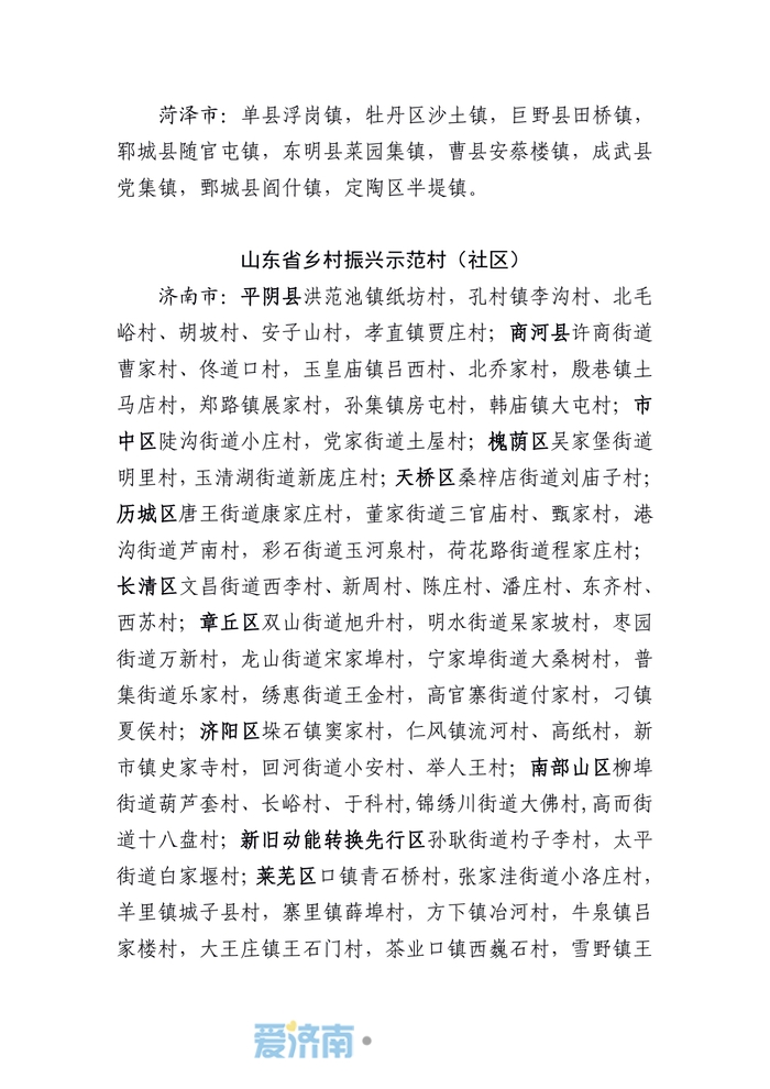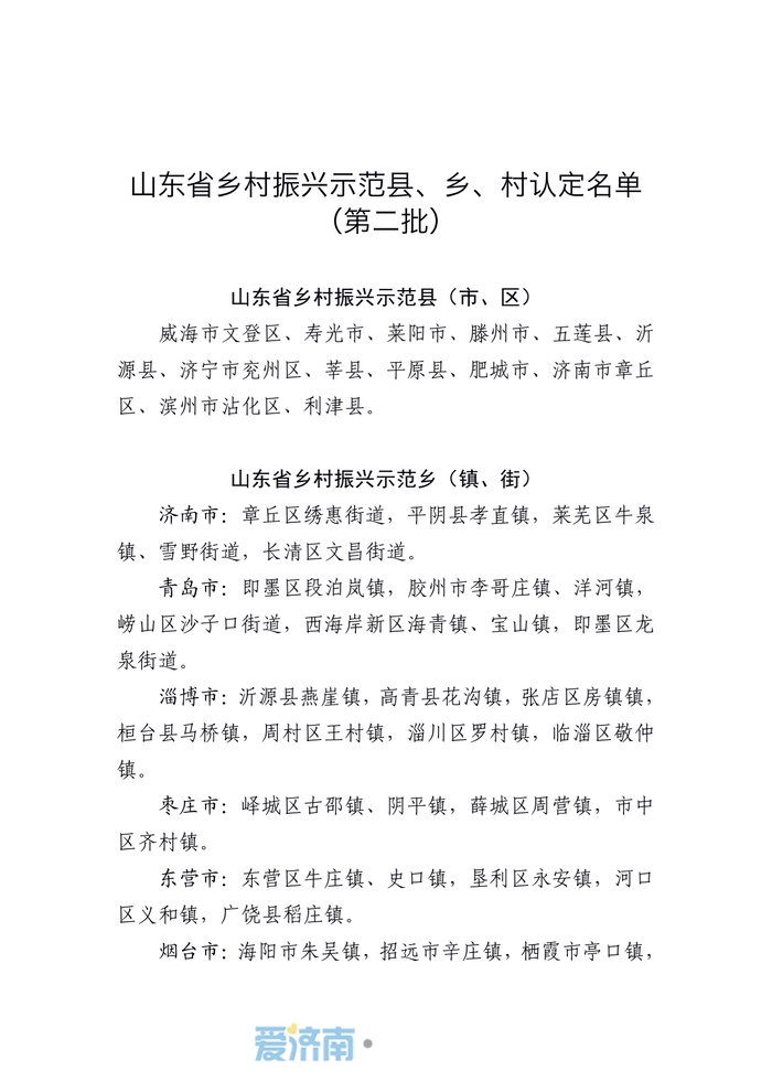 近日,山东省发展改革委联合省委组织部等部门公布了《第二批山东省乡村振兴示范县乡村认定名单》,济南市章丘区等地上榜。