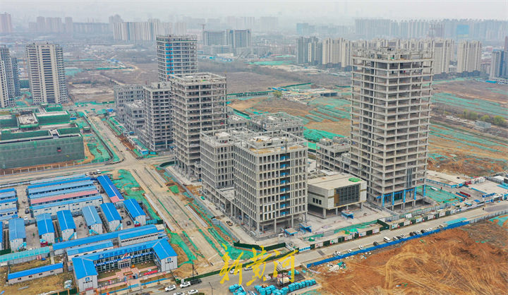 3月22日,在历城区河东路与响泉路交叉口南约40米的济南市省企总部城商业地块,济南东总部基地项目正在如火如荼建设中,该项目一期11栋楼主体建筑全部封顶,正在进行外立面安装。