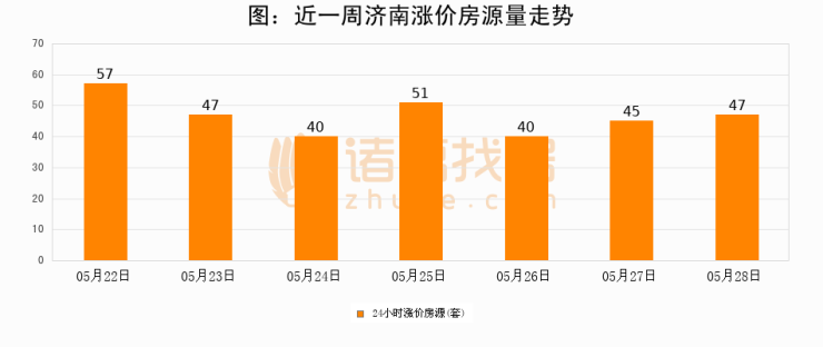根据诸葛找房数据显示,济南24小时涨价房源量为47套,较05月27日增加2套,环比上涨4.4%。与此同时,涨价房源占比小幅扩大,业主信心有所提升。